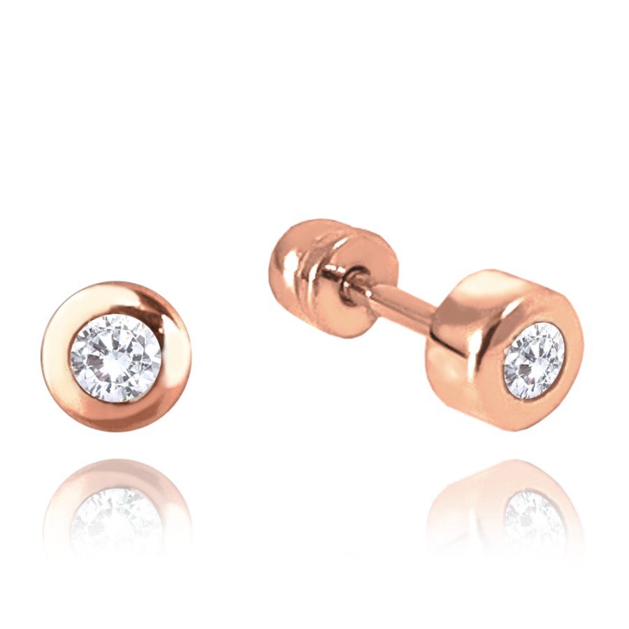 MINET Zlaté náušnice na šroubek z růžového zlata s bílými zirkony Au 585/1000 1,20g