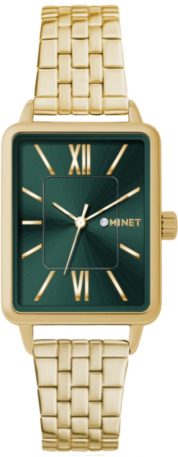 MINET Zlato-zelené dámské hodinky SIENA se zlatým ocelovým řemínkem