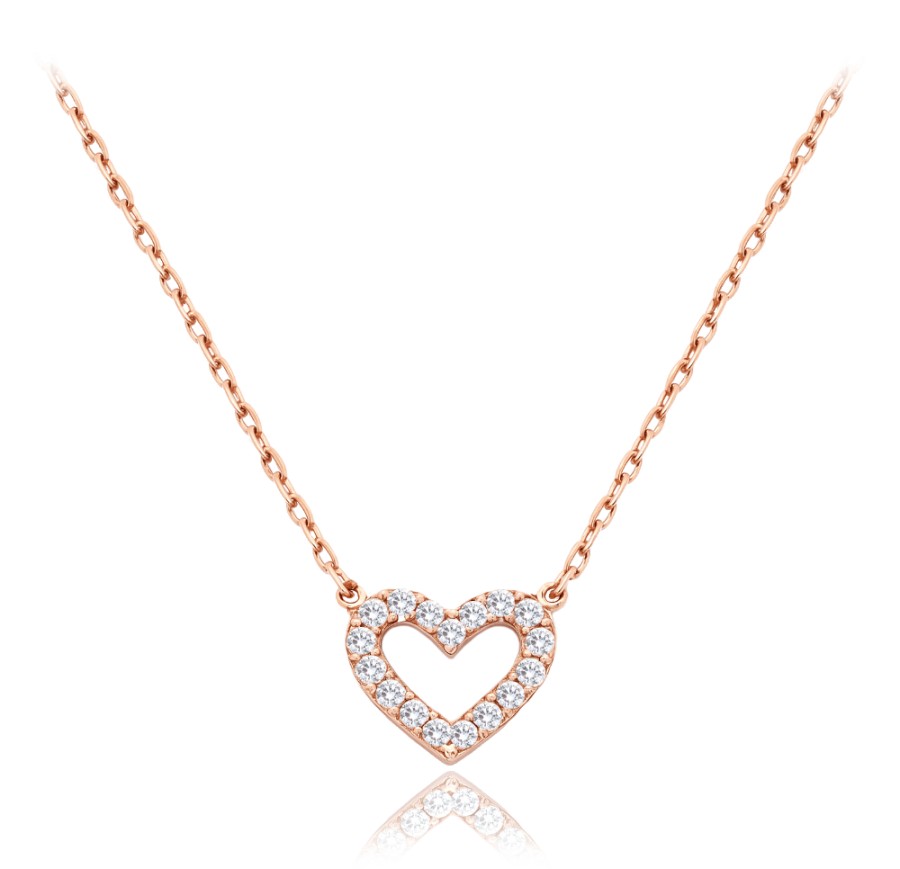 MINET Zlatý náhrdelník srdce z růžového zlata s bílými zirkony Au 585/1000 1,65g