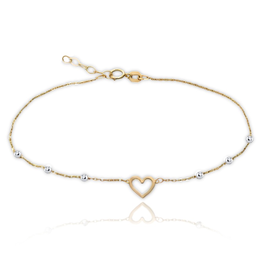 MINET Zlatý náramek srdíčko a kuličky v kombinaci bílého a žlutého zlata Au 585/1000 1,05g