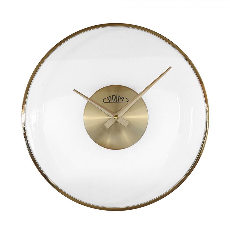 Nástěnné plastové hodiny PRIM Pellucid Lens díky vypouklému minerálnímu sklu, které dodává hodinám nádech luxusu, působí jako velká průhledná čočka. Společně se zlatavými prvky vytváří hodiny elegantní dojem.