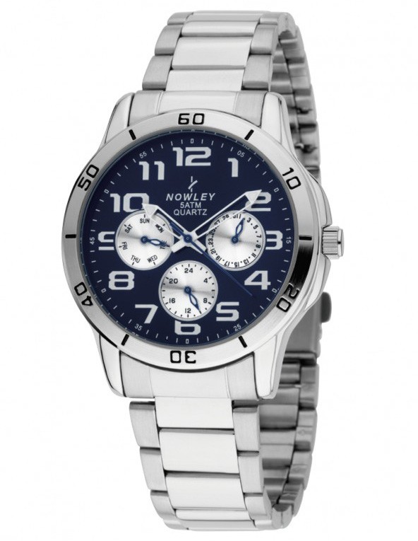 Pánské analogové hodinky NOWLEY Hot mají ocelové pouzdro, černý ciferník, minerální sklo a ocelový tah.