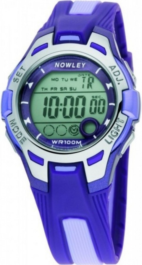 Dámské digitální hodinky NOWLEY Racing digital mají plastové pouzdro stříbrno-růžové barvy, minerální sklo a šedo-růžový plastový řemínek. Strojek hodinek pohání baterie. Rozměry hodinek jsou 36,5 x 36,5 x 13,5 mm a vodotěsnost 10 ATM. Funkce: Hodiny, minuty, sekundy, měsíc, datum, den v týdnu, odpočet času, budík, dva časy, stopky.