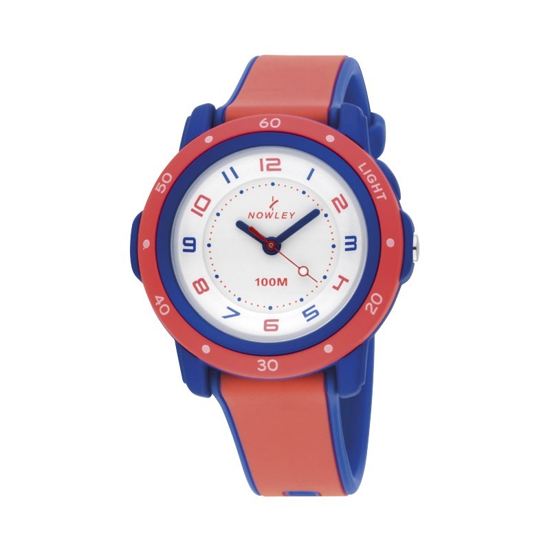 Dětské hodinky Nowley Racing mají plastové pouzdro, sklíčko i řemínek. Hodinky mají také osvětlení. Quartz strojek hodinek pohání baterie. Rozměry hodinek jsou 35 x 33 x 13 mm a vodotěsnost 10 ATM. Funkce: Hodiny, minuty, sekundy, světlo.