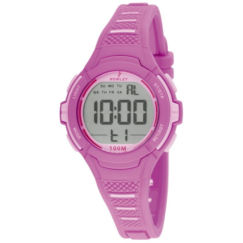 Dětské digitální hodinky NOWLEY Racing digital mají plastové pouzdro , plastové sklo a plastový řemínek. Hodinky mají stopky, budík, osvětlení. Strojek hodinek pohání baterie. Rozměry hodinek jsou 35 x 38 x 13 mm a vodotěsnost 10 ATM.
