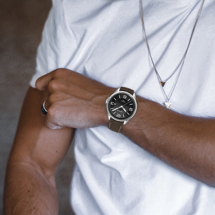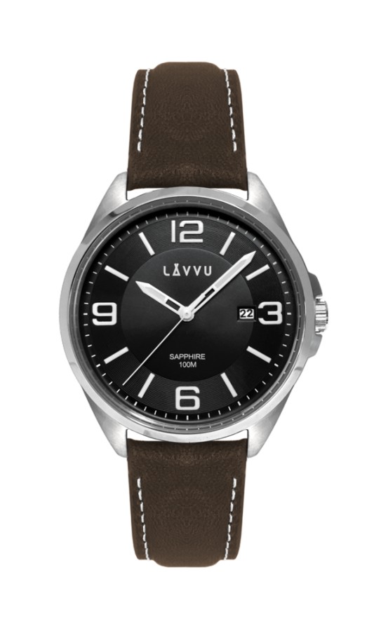 Pánské hodinky se safírovým sklem LAVVU HERNING Black / Top Grain Leather