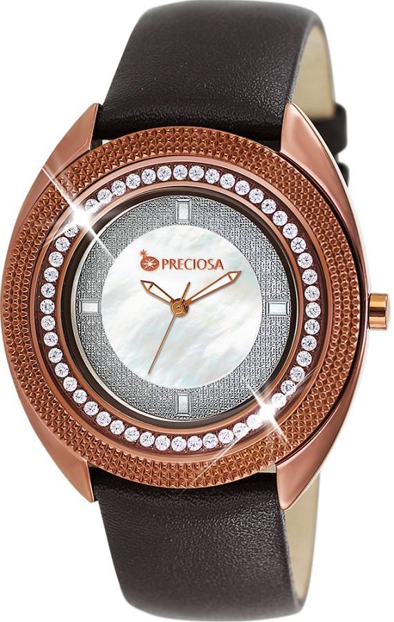 Dámské hodinky speciální edice PRIM PRECIOSA. Pouzdro je vyrobeno z ušlechtilé oceli 316 L upravené leštěním do vysokého lesku. Zdobení pouzdra kubickou zirkonií PRECIOSA je provedeno CNC technologií, kdy jsou krystaly fasovány do ocelového pouzdra. Eleganci a šarm hodinkám dodává řemínek z kvalitní kůže. 5 ATM zaručuje odolnost proti vodě při běžném užívání. Tyto hodinky jsou dodávány v luxusní krabičce se záručním listem a návodem.