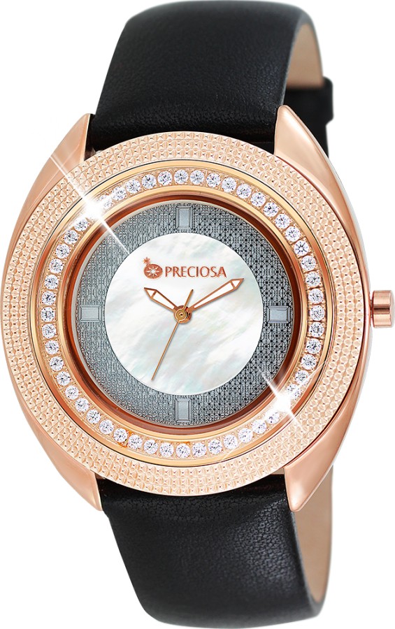 Dámské hodinky speciální edice PRIM PRECIOSA. Pouzdro je vyrobeno z ušlechtilé oceli 316 L upravené leštěním do vysokého lesku. Zdobení pouzdra kubickou zirkonií PRECIOSA je provedeno CNC technologií, kdy jsou krystaly fasovány do ocelového pouzdra. Eleganci a šarm hodinkám dodává řemínek z kvalitní kůže. 5 ATM zaručuje odolnost proti vodě při běžném užívání. Tyto hodinky jsou dodávány v luxusní krabičce se záručním listem a návodem.