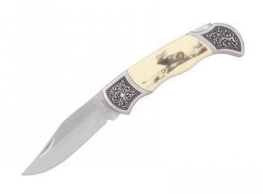 Vreckový zatvárací nôž klasického vzhľadu s ornamentálnym rytinou na kovanie a pätke rukoväte a zdobenými črienkami. Tento nôž sa hodí na bežné nosenie a vďaka prírodným motívom ho ocenia najmä poľovníci a lovci.