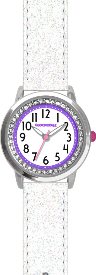 Bílé třpytivé dívčí dětské hodinky se kamínky CLOCKODILE SPARKLE
