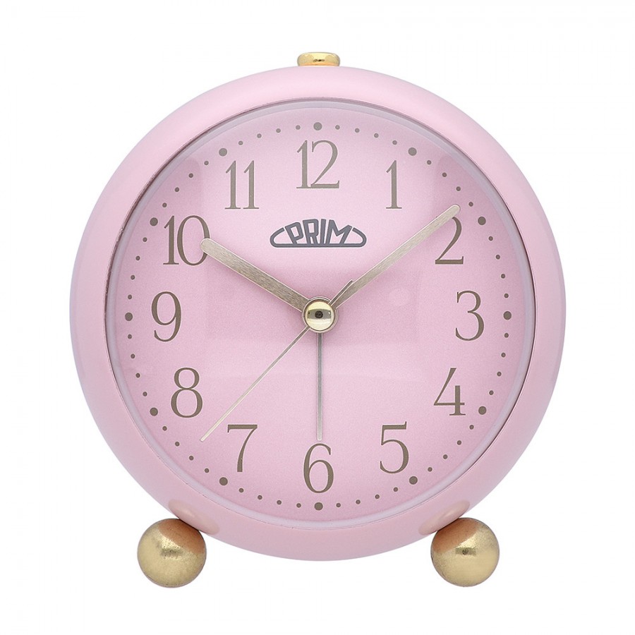 Kovový budík PRIM Candy Pastel Alarm v jemnom designe. Tento budík je výrazný vďaka "sladkým" pastelovým farbám s detailmi a číslami v zlatom prevedení. Jeho nôžky majú netradičný vzhľad. Budík Vás rozhodne nebude rušiť pri snívaní vďaka sekundovej ručičke s funkciou plynulý chod. Jeho eleganciu potrhuje decentne vypuklé sklo.