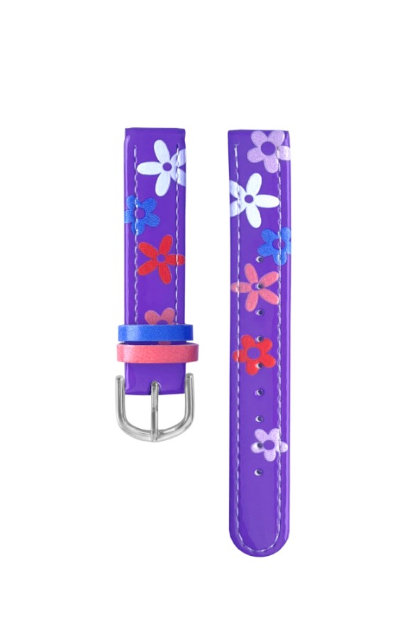 CLOCKODILE Fialový řemínek k dětským hodinkám kytky