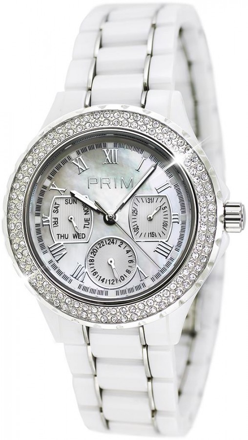 Dámské keramické multifunkční hodinky. Do bílého keramického pouzdra s průměrem 40 mm je použit quartzový strojek kalibr 6P29. Dno je z ušlechtilé nerezové oceli 316L uzavřené čtveřicí šroubků. Vodotěsnost 5 ATM zaručuje odolnost proti vodě při běžném použití. V otočném kroužku s jednosměrnou aretací je vsazeno přes 120 krystalů Swarovski. Pod minerálním sklíčkem byl použit číselník z pravé přírodní perleti měnící odstín dle dopadu světla. V čítači na pozici 3 hod. je umístěn datum. Den v týdnu a 24hodinový duální čas, jsou umístěny v čítačích na pozici 9 resp. 6 hodin . Luminiscenční vrstvou jsou pokryty, jak hlavní hodinové ručky, tak i ručky čítačů. Náramek je vyroben rovněž z keramiky zpevněn ocelovými prvky. Spona tzv. motýlek dává vyniknout keramickému náramku. Tyto hodinky jsou dodávány v luxusní krabičce se záručním listem a návodem.
