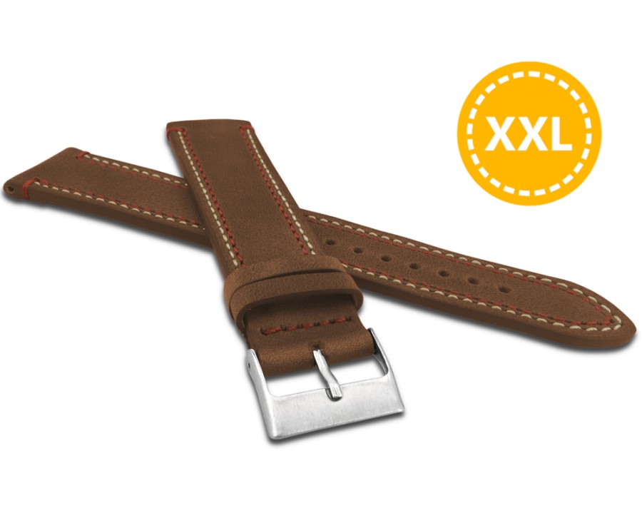Dvojitě prošitý hnědý řemínek LAVVU SPORT z luxusní kůže Top Grain - 20 XXL
