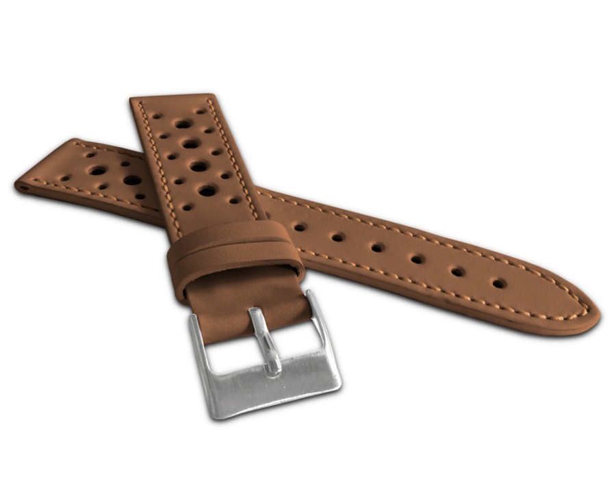 LAVVU Perforovaný světle hnědý prošitý řemínek VINTAGE z luxusní kůže Top Grain - 18