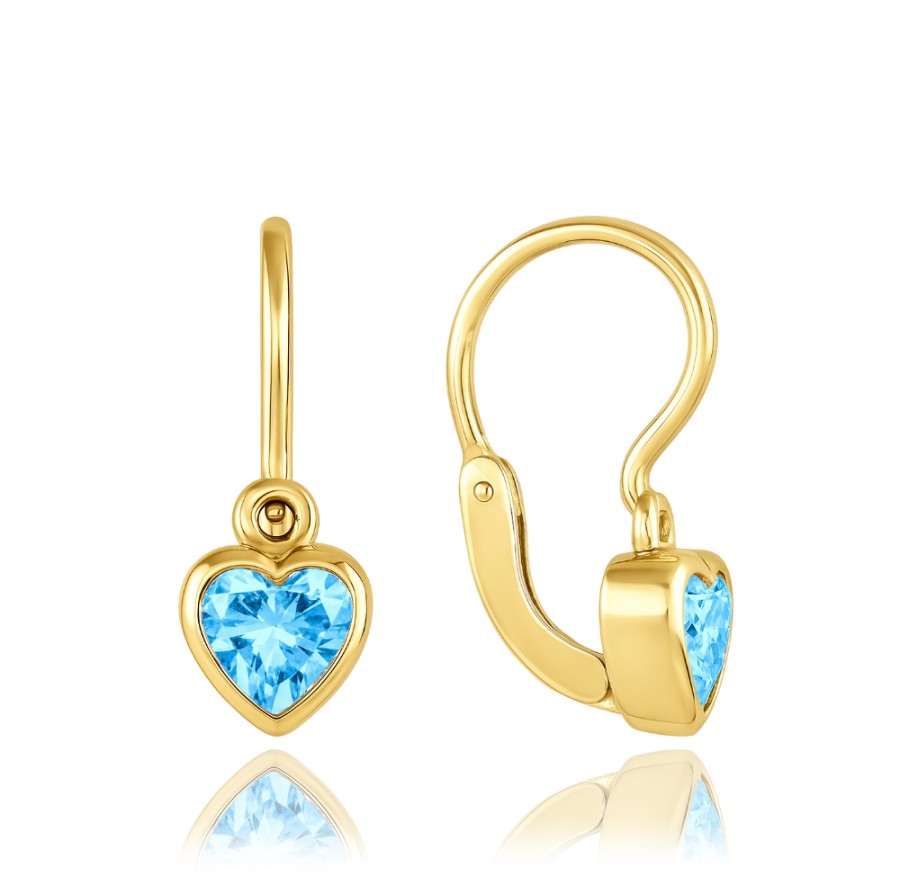 MINET Dětské náušnice s předním zapínáním srdíčka s modrými zirkony Au 585/1000 1,25g