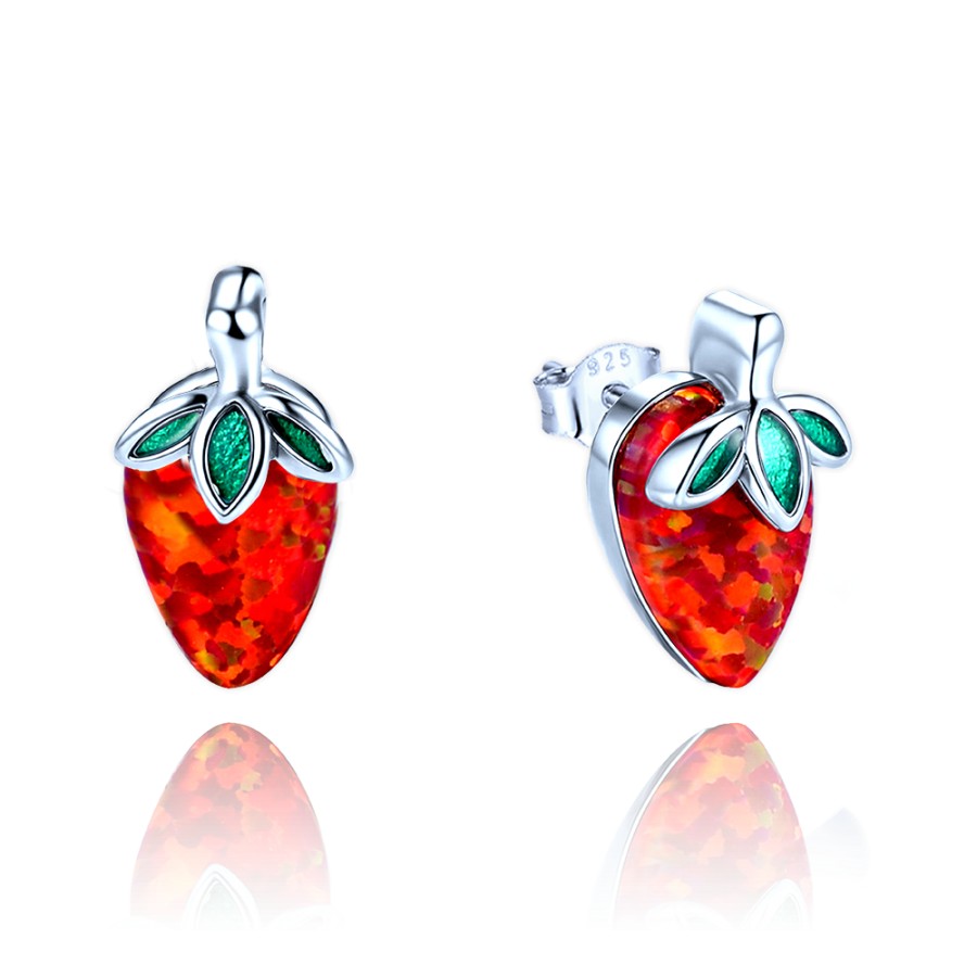 MINET Dětské stříbrné náušnice jahůdky s červeným opálem