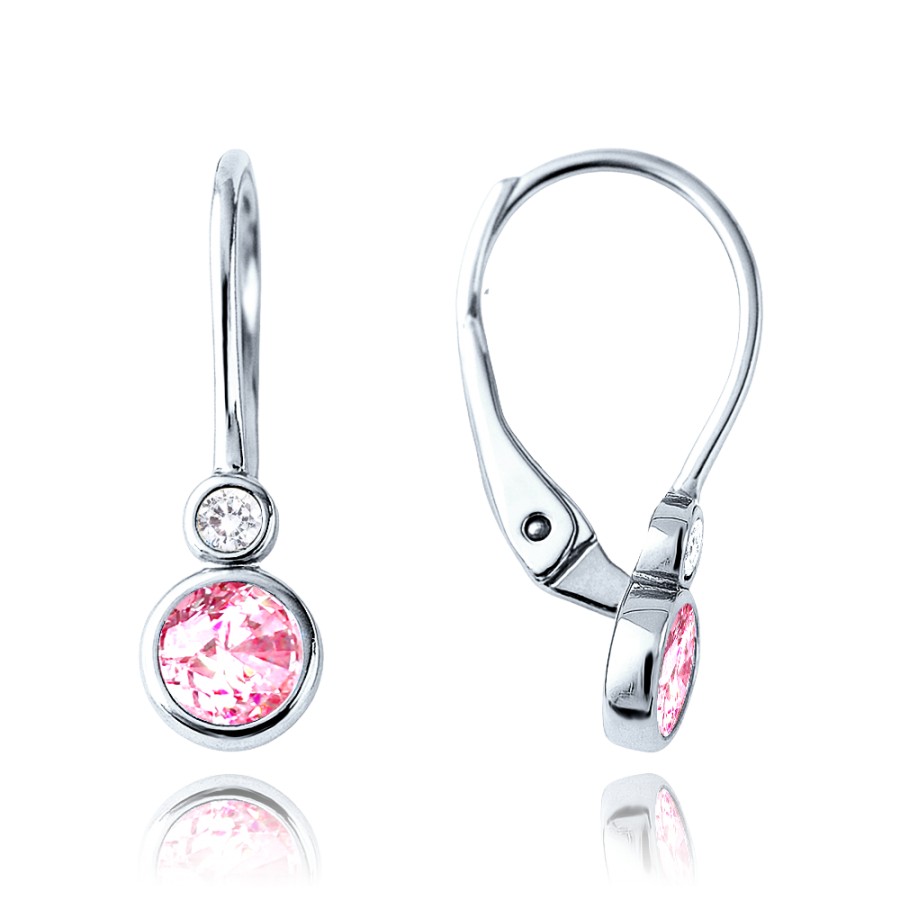 MINET Elegantní náušnice z bílého zlata s bílými a růžovými zirkony Au 585/1000 1,70g