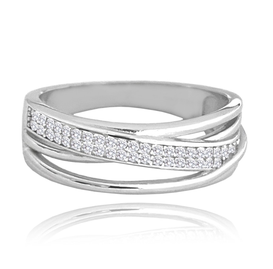 MINET Křížený stříbrný prsten s bílými zirkony vel. 62