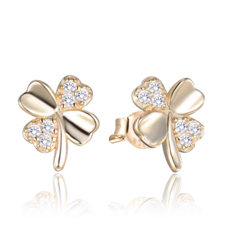 MINET Pozlacené stříbrné náušnice ČTYŘLÍSTKY s bílými zirkony