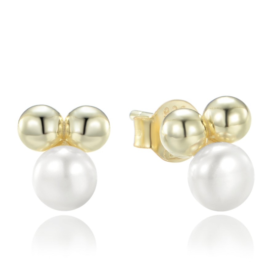 MINET Pozlacené stříbrné náušnice s kuličkami a přírodními perlami