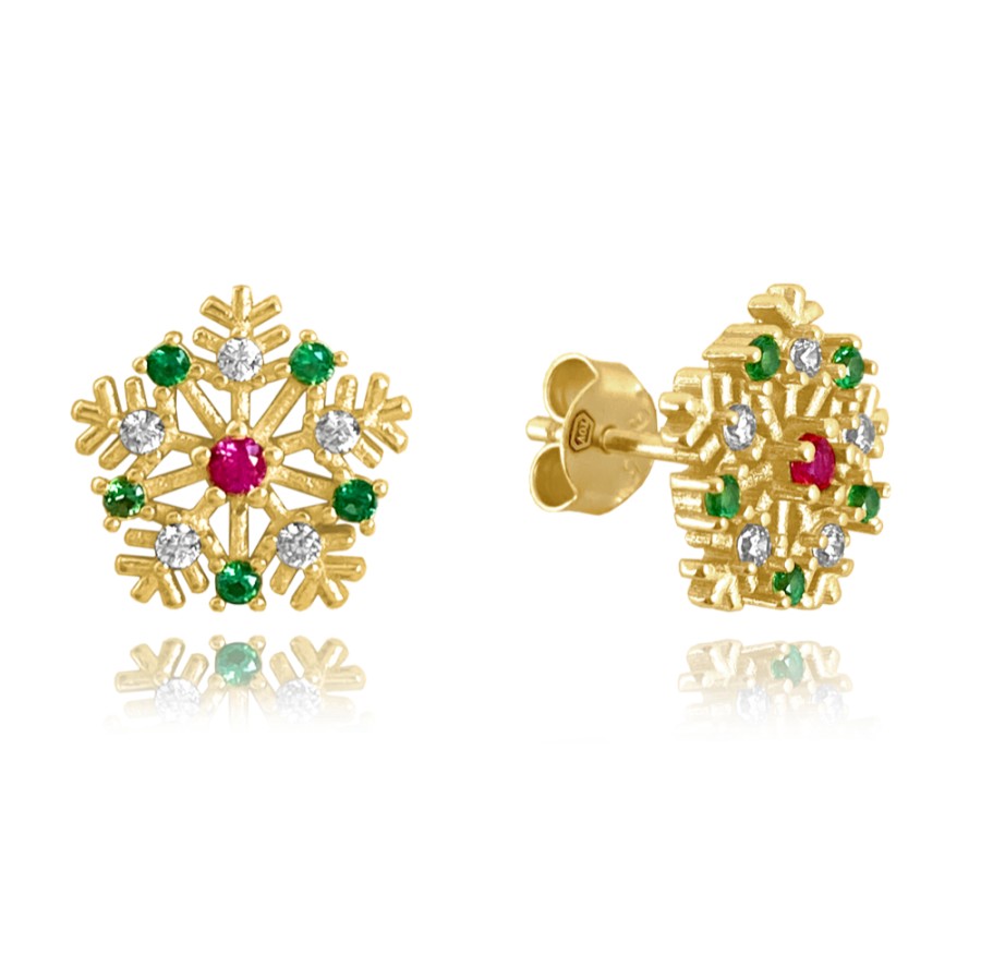 MINET Pozlacené stříbrné náušnice SNĚHOVÉ VLOČKY s barevnými zirkony