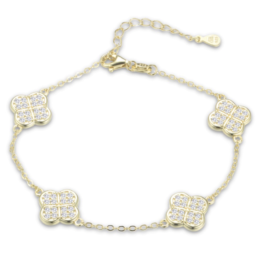MINET Pozlacený stříbrný náramek čtyřlístky s bílými zirkony