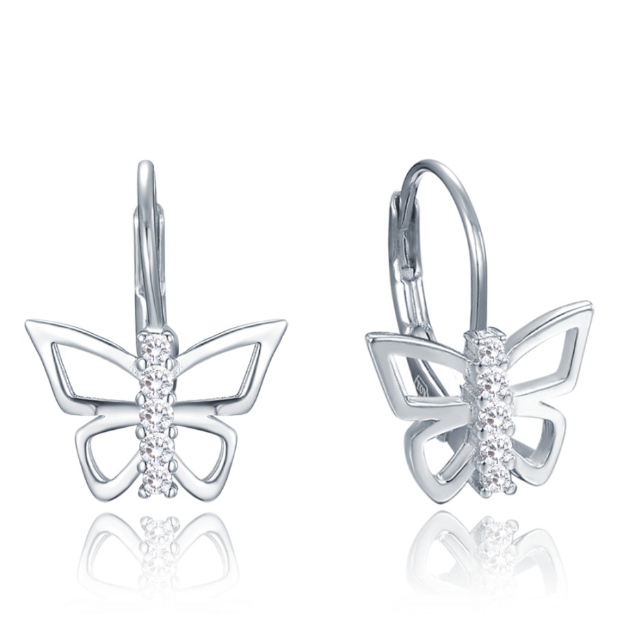 MINET Stříbrné náušnice motýlci s bílými zirkony