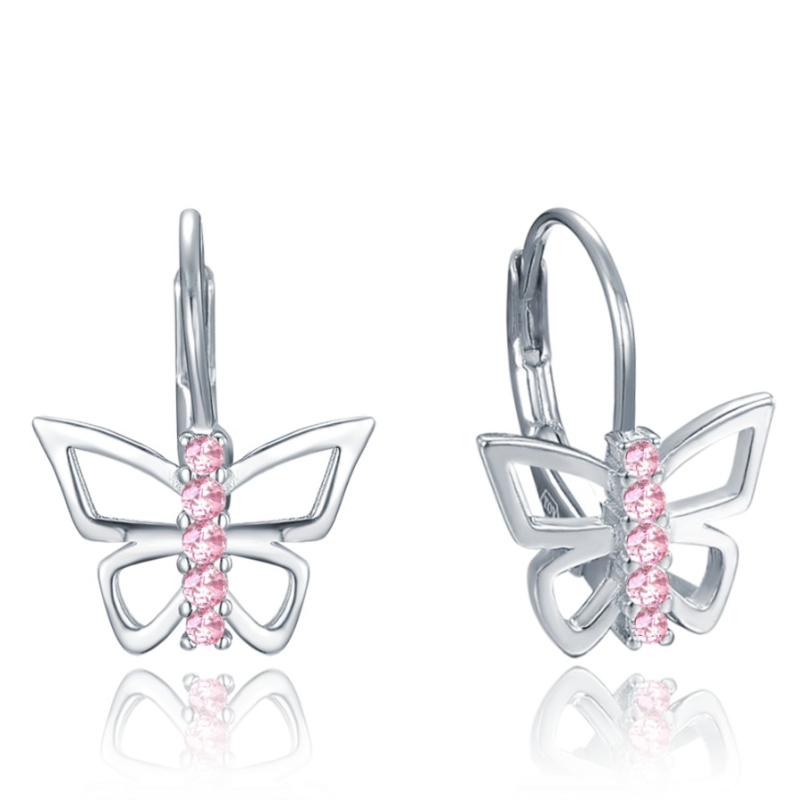 MINET Stříbrné náušnice motýlci s růžovými zirkony