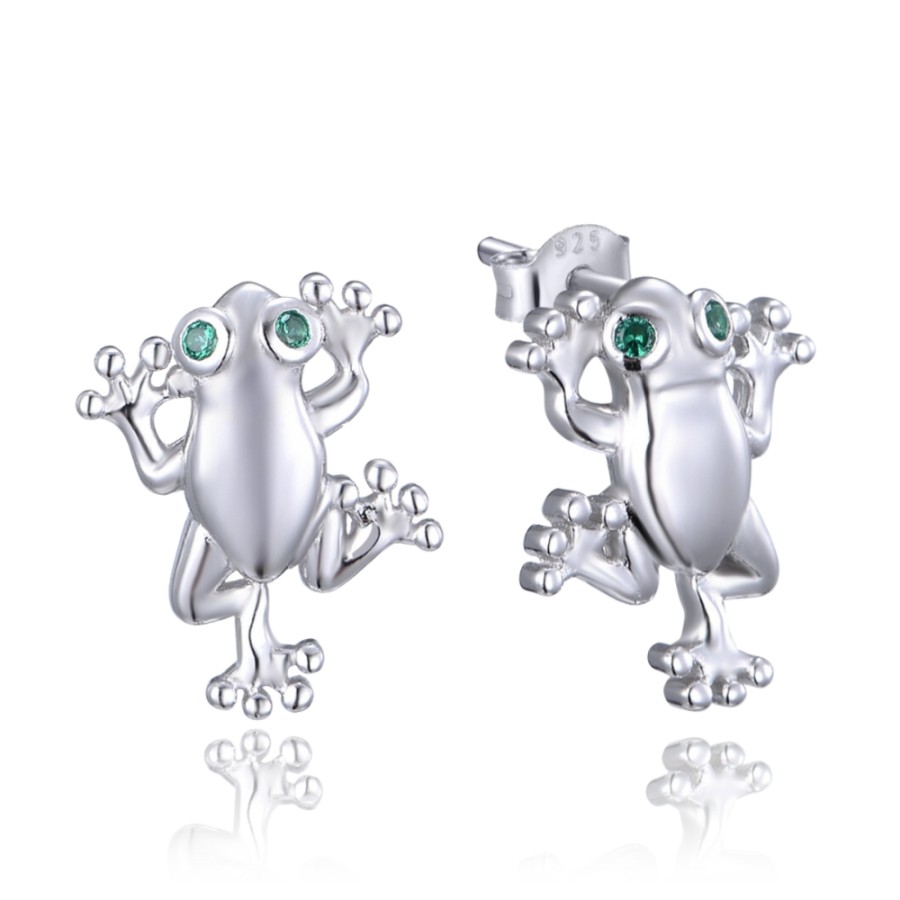 MINET Stříbrné náušnice ŽABKY s bílými zirkony