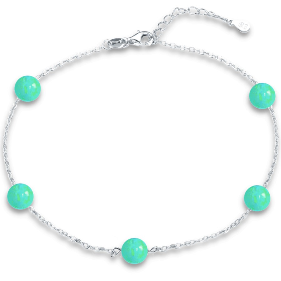 MINET Stříbrný řetízek na kotník se zelenými opály
