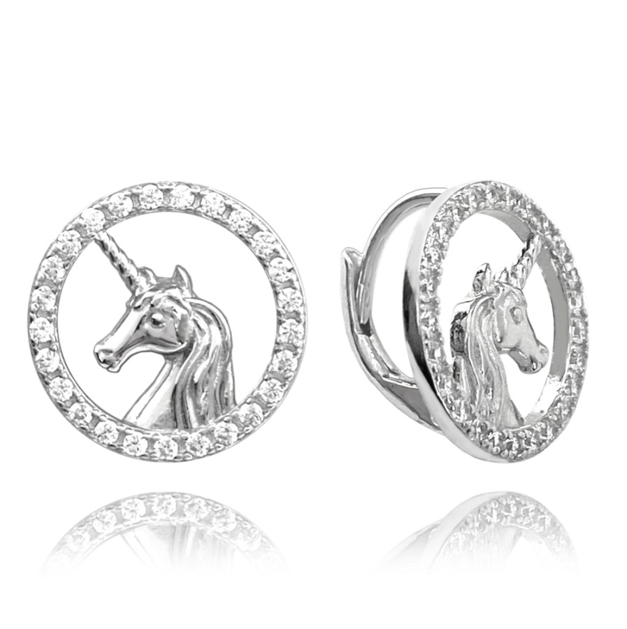 MINET Třpytivé stříbrné náušnice JEDNOROŽCI s bílými zirkony