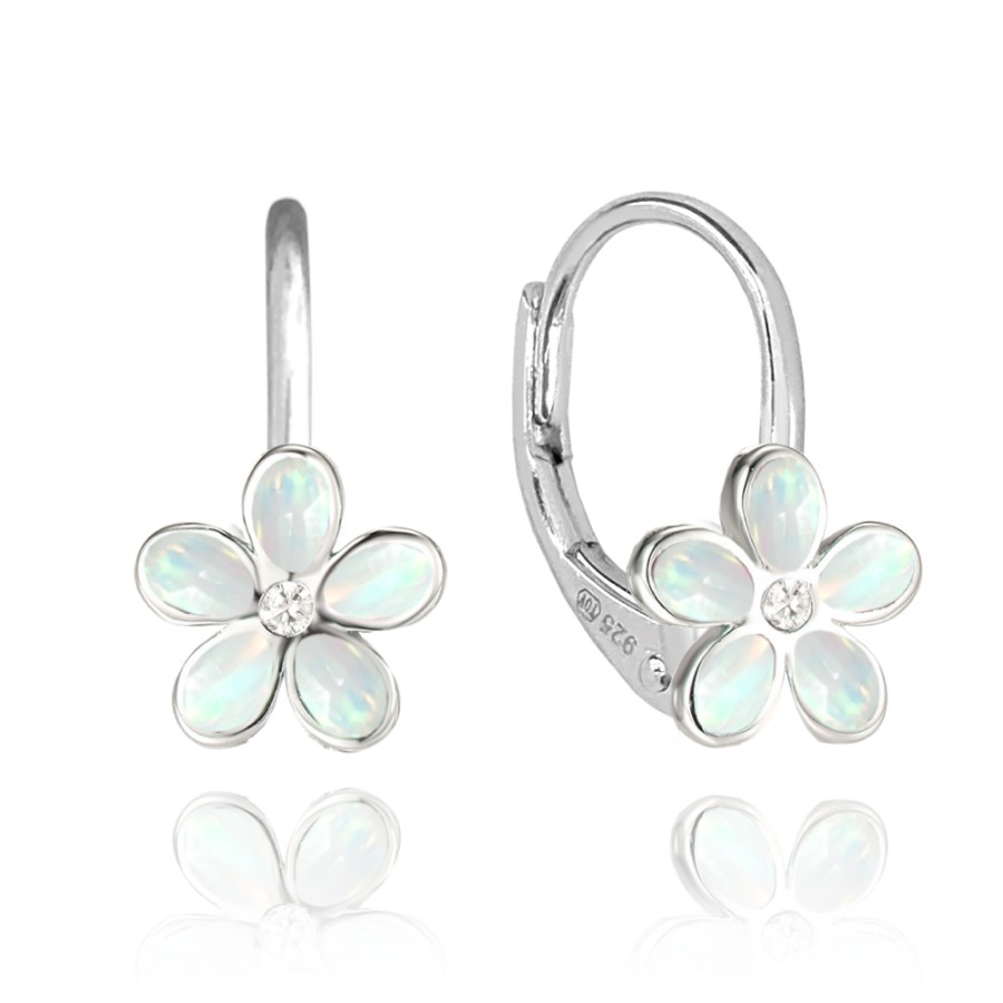MINET Třpytivé stříbrné náušnice KYTIČKY s bílými opálky a zirkonem