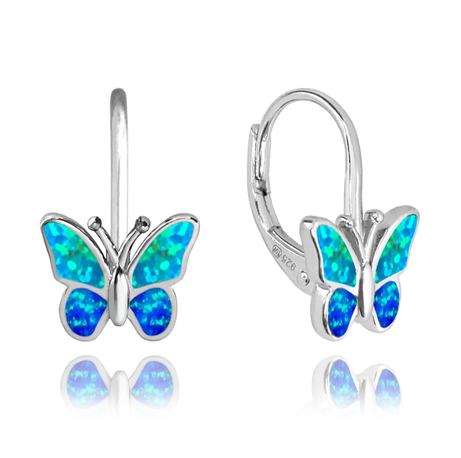 MINET Třpytivé stříbrné náušnice MOTÝLCI s modrým opálem