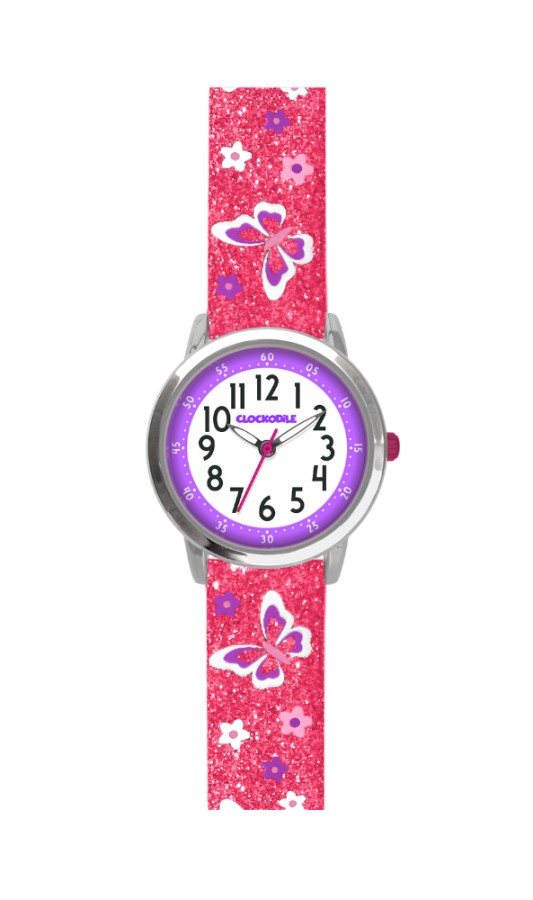 Motýlí růžové dívčí hodinky CLOCKODILE BUTTERFLIES se třpytkami
