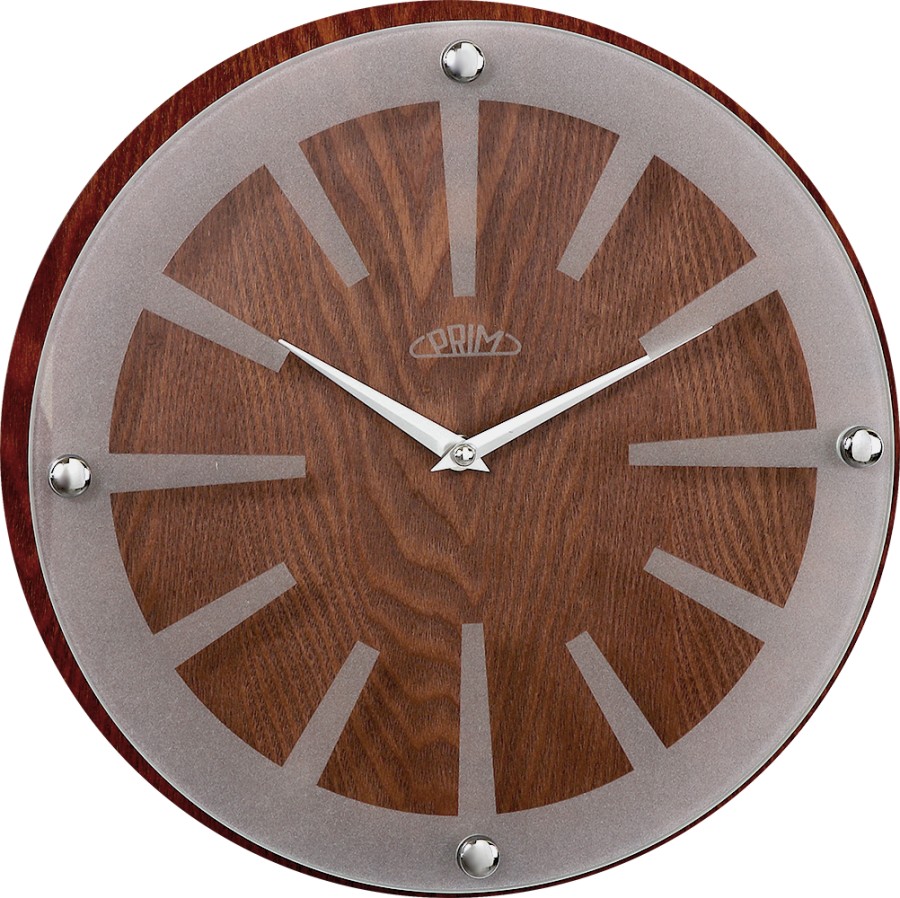 Nástěnné hodiny PRIM Wood Singular mají nápaditý design. Stanou se nepřehlédnutelným doplňkem interiéru.