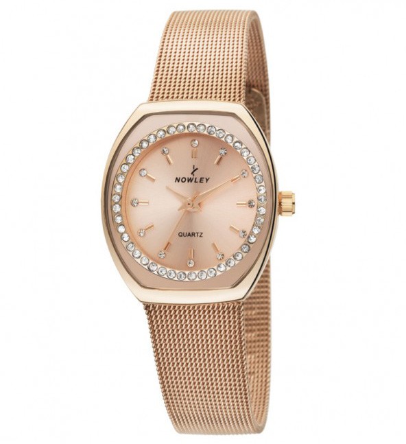 Dámske analógové hodinky NOWLEY CHIC majú mosadzné puzdro, minerálne sklo a oceľový remienok. Quartz strojček hodiniek poháňa batéria. Rozmery hodiniek sú 28 x 32,5 x 10 mm a vodotesnosť 3 ATM. Funkcia: Hodiny, minúty, sekundy. Hodinky majú kvalitný čitateľný ciferník s dobre viditeľnými rúčkami.