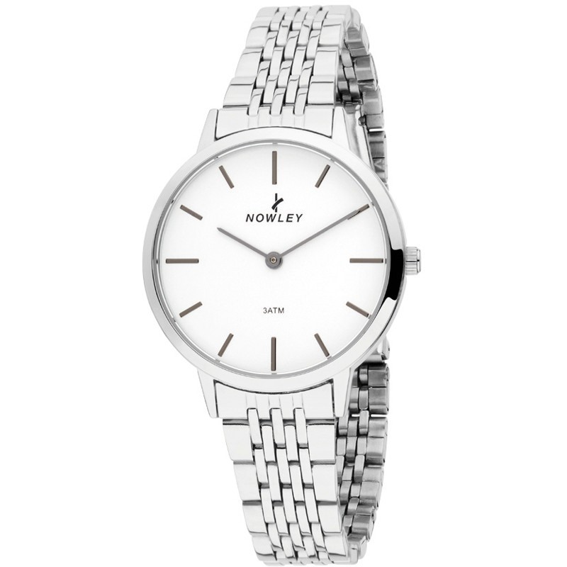 Dámske analógové hodinky NOWLEY CHIC majú mosadzné puzdro, minerálne sklo a oceľový remienok. Quartz strojček hodiniek poháňa batéria. Priemer hodiniek je 32 mm, a vodotesnosť 3 ATM. Funkcie: Hodiny, minúty, sekundy.
