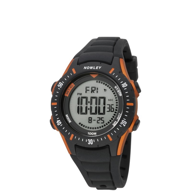 Pánske digitálne hodinky NOWLEY Racing digital majú plastové púzdro, minerálne sklo a plastový remienok. Hodinky majú stopky, budík, osvetlenie. Strojček hodiniek poháňa batérie. Rozmery hodiniek sú 40 x 40 x 16 mm a vodotesnosť 10 ATM.