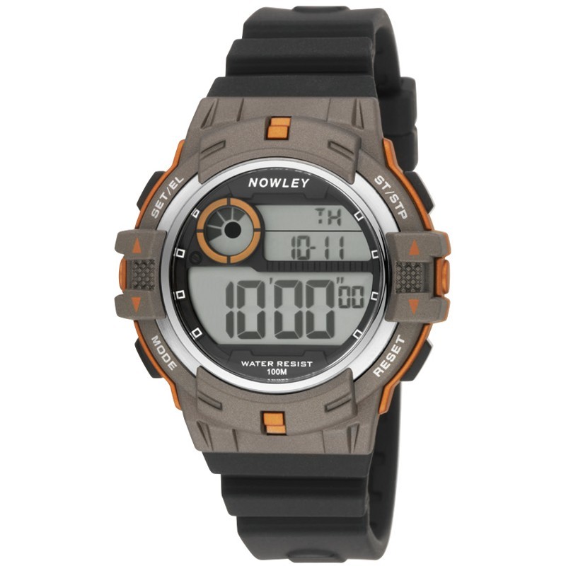 Pánske digitálne hodinky NOWLEY Racing digital majú plastové púzdro, minerálne sklo a plastový remienok. Hodinky majú stopky, budík, osvetlenie. Strojček hodiniek poháňa batérie. Rozmery hodiniek sú 50 x 54 x 17 mm a vodotesnosť 10 ATM.