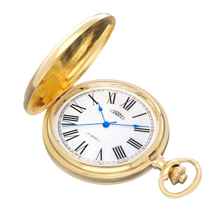 Klasické mechanické vreckové hodinky PRIM s ručným náťahom s rímskymi číslicami. Novo navrhnutý plášť hodiniek zdobí symbol českého znaku, teda dvojchvostý lev doplnený erbom, ktorý sa perfektne hodí na individualizáciu monogramu. Hodinky sú dodávané s nerezovou retiazkou.