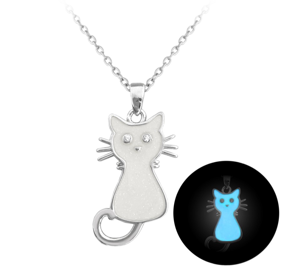 Svítící bílý stříbrný náhrdelník MINET KOČIČKA