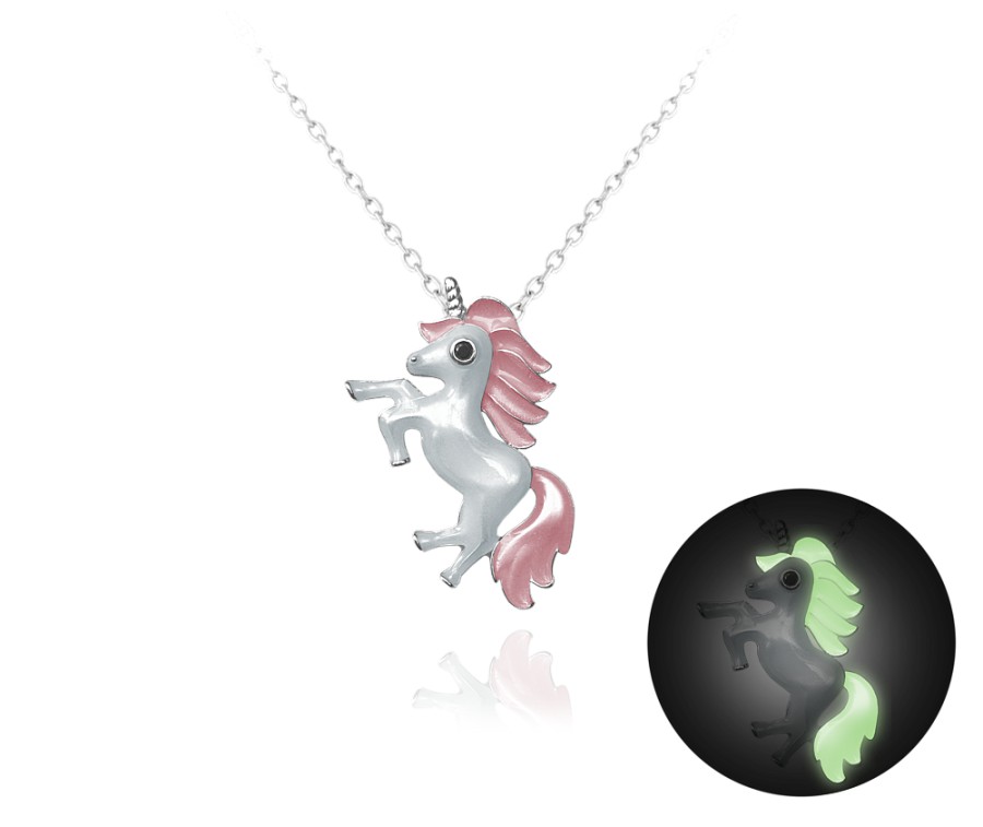 Svítící růžový stříbrný náhrdelník MINET JEDNOROŽEC