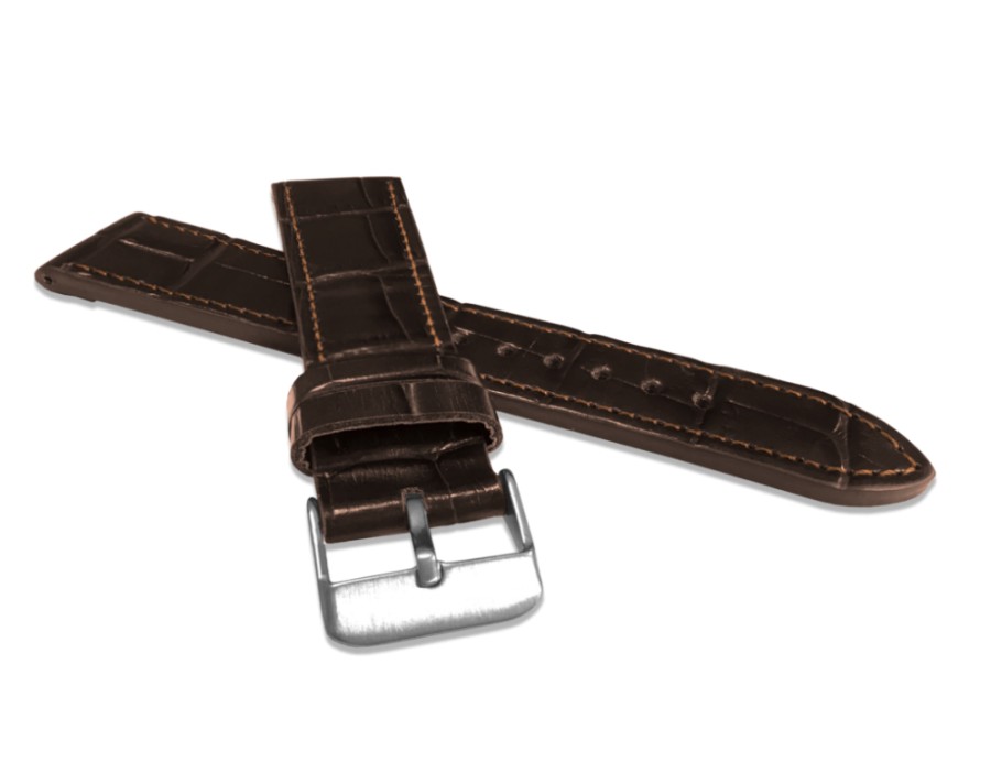 Tmavě hnědý prošitý řemínek LAVVU CROCO z luxusní kuže Top Grain - 18
