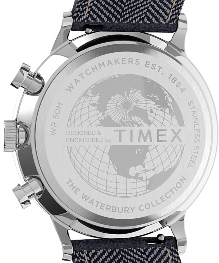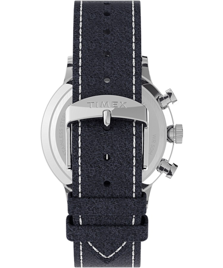 stopky, dátum, osvetlenie, vodotesnosť WR50M, kožený remienok, minerálne sklo, priemer hodiniek 40 mm.
