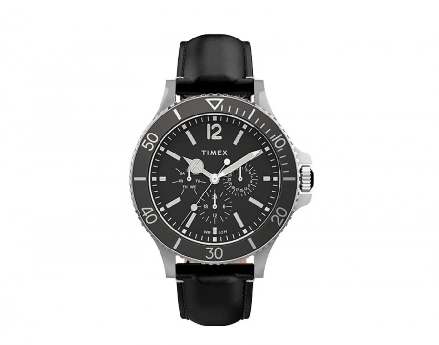 Pánske hodinky, luminiscenčné rúčky a indexy, dátum, deň v týždni, vodotesnosť WR50M, priemer hodiniek 43 mm.