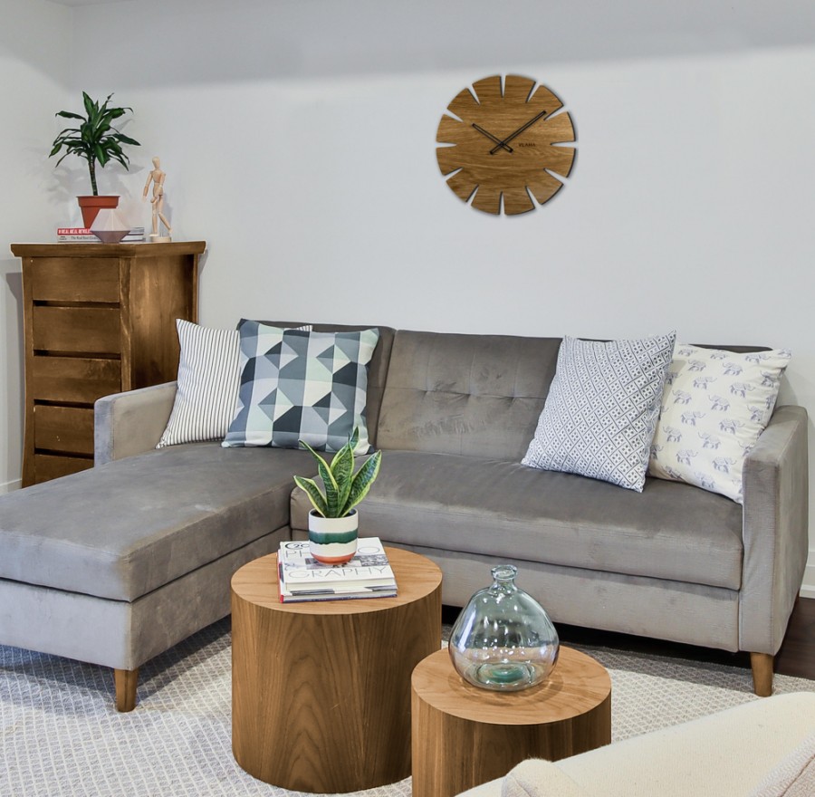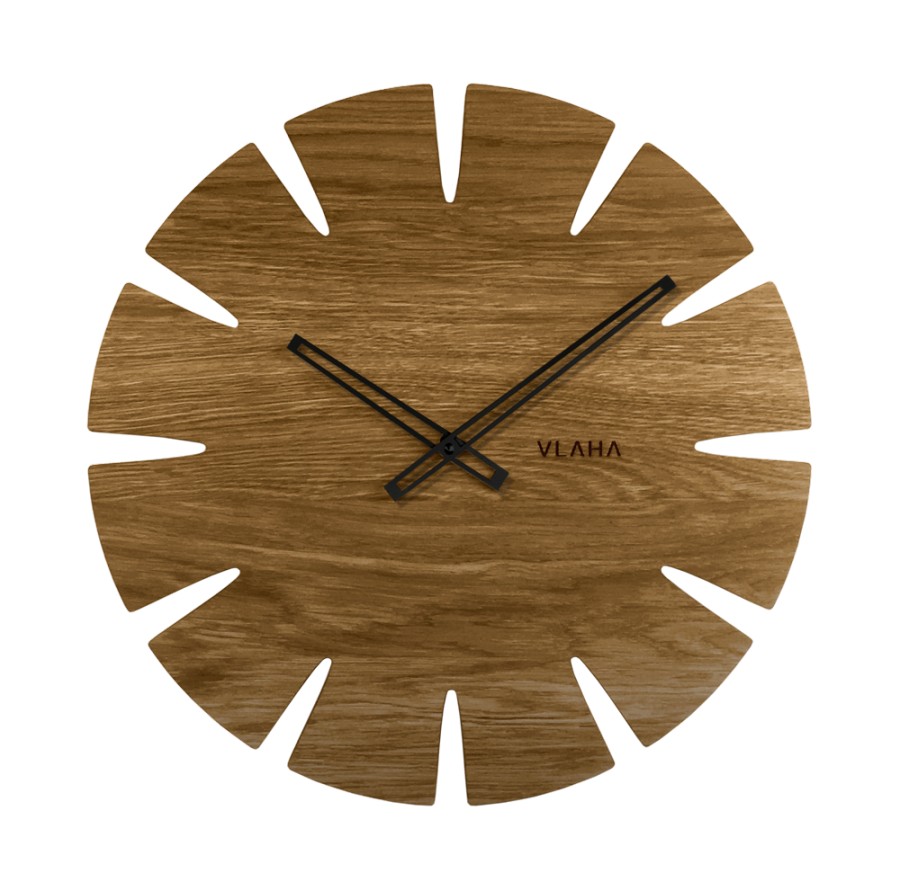 Velké dubové hodiny VLAHA ORIGINAL vyrobené v Čechách s černými ručkami