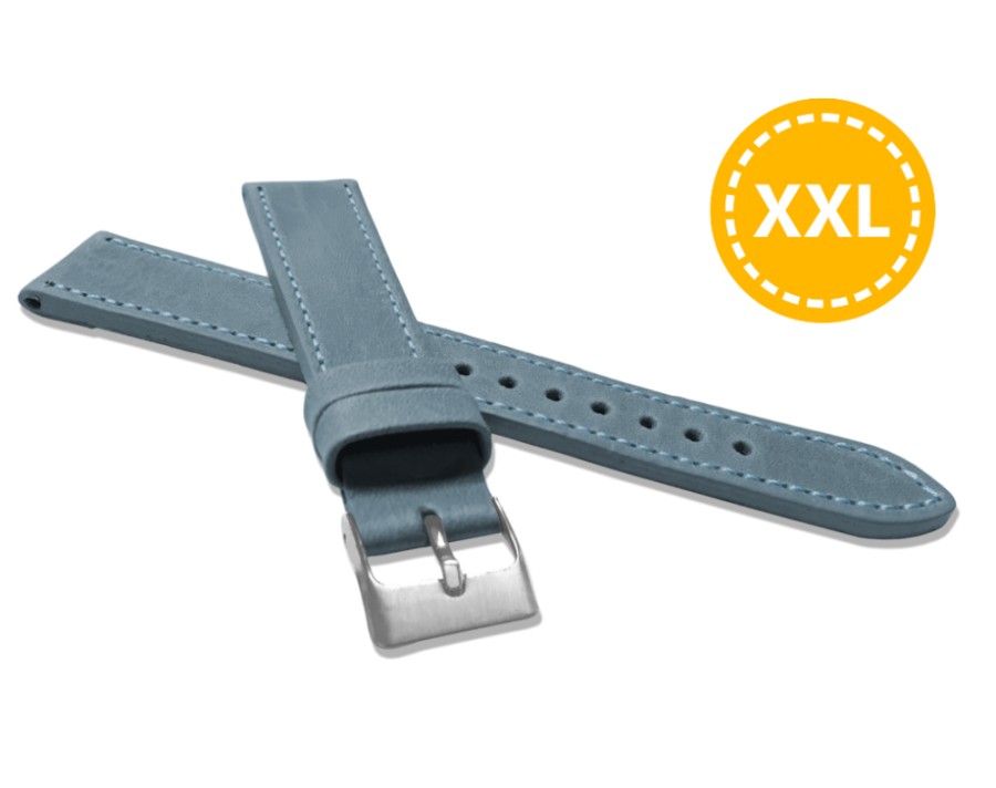 XXL Prodloužený prošitý modrý řemínek LAVVU SPORT z luxusní kůže Top Grain - 18 XXL