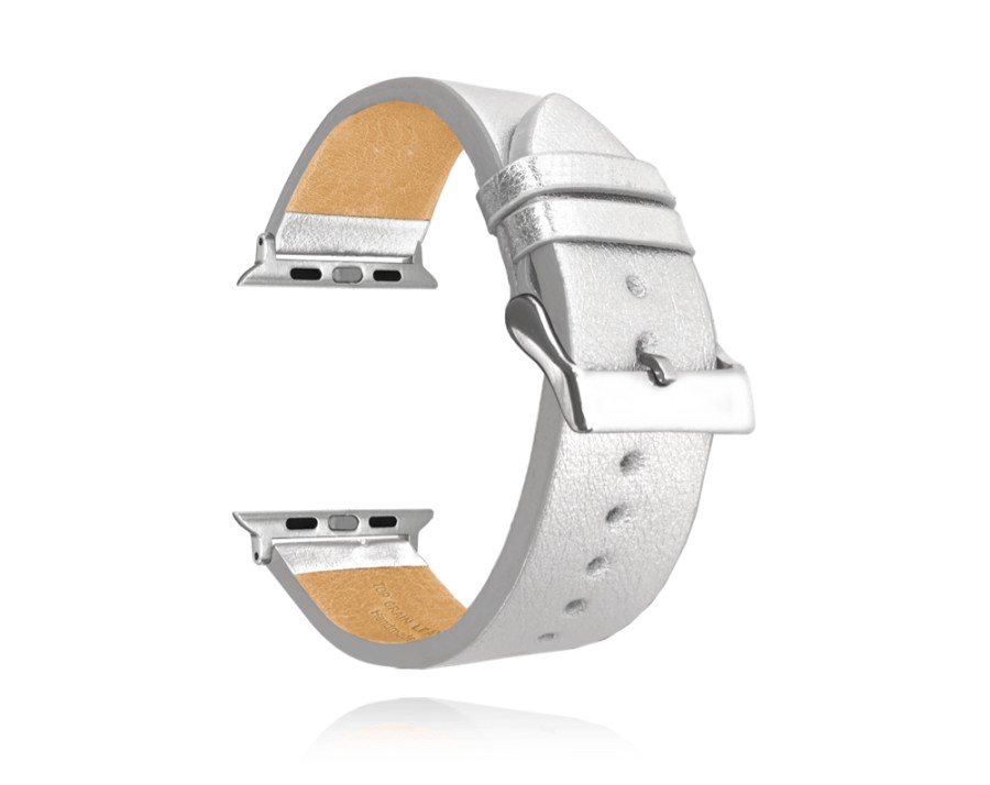 Stříbrný kožený řemínek MINET Top Grain pro APPLE WATCH 42-44 mm