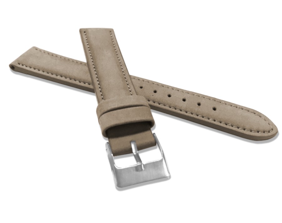 Světle hnědý prošitý kožený řemínek MINET z jemného nubuku - 20